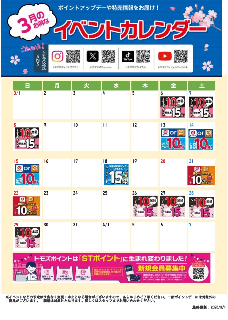 トモズ イクスピアリ店営業時間外 - 営業開始 水曜日 10:00